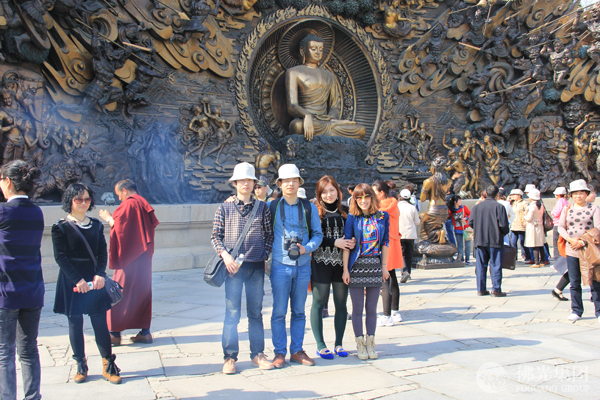 2013佛光集团全体员工无锡快乐之旅——4月11日春光明媚,在集团的统一组织下,全体员工参加了无锡快乐旅游活动,4月11日中午抵达本次旅游活动的第一站灵山胜境,先后游览了九龙灌浴、灵山大佛、灵山梵宫、藏传佛教五印坛城等景点。初游灵山的同事们纷纷对灵山的众多艺术精品感到惊叹和赞美,对各景点陈展的我公司精品(童子观音、九龙灌浴音箱台、掐丝珐琅十二生肖、五印坛城五方佛、藏佛等)感到十分的骄傲和自豪。